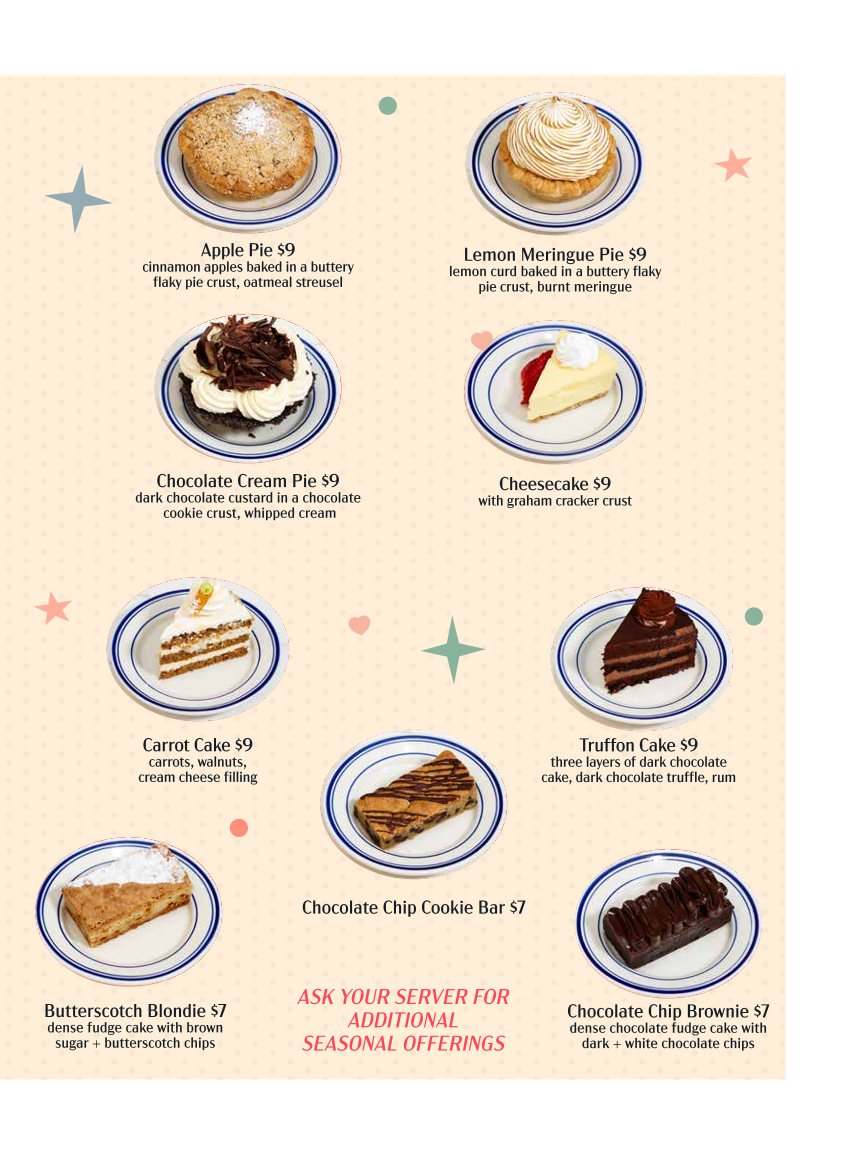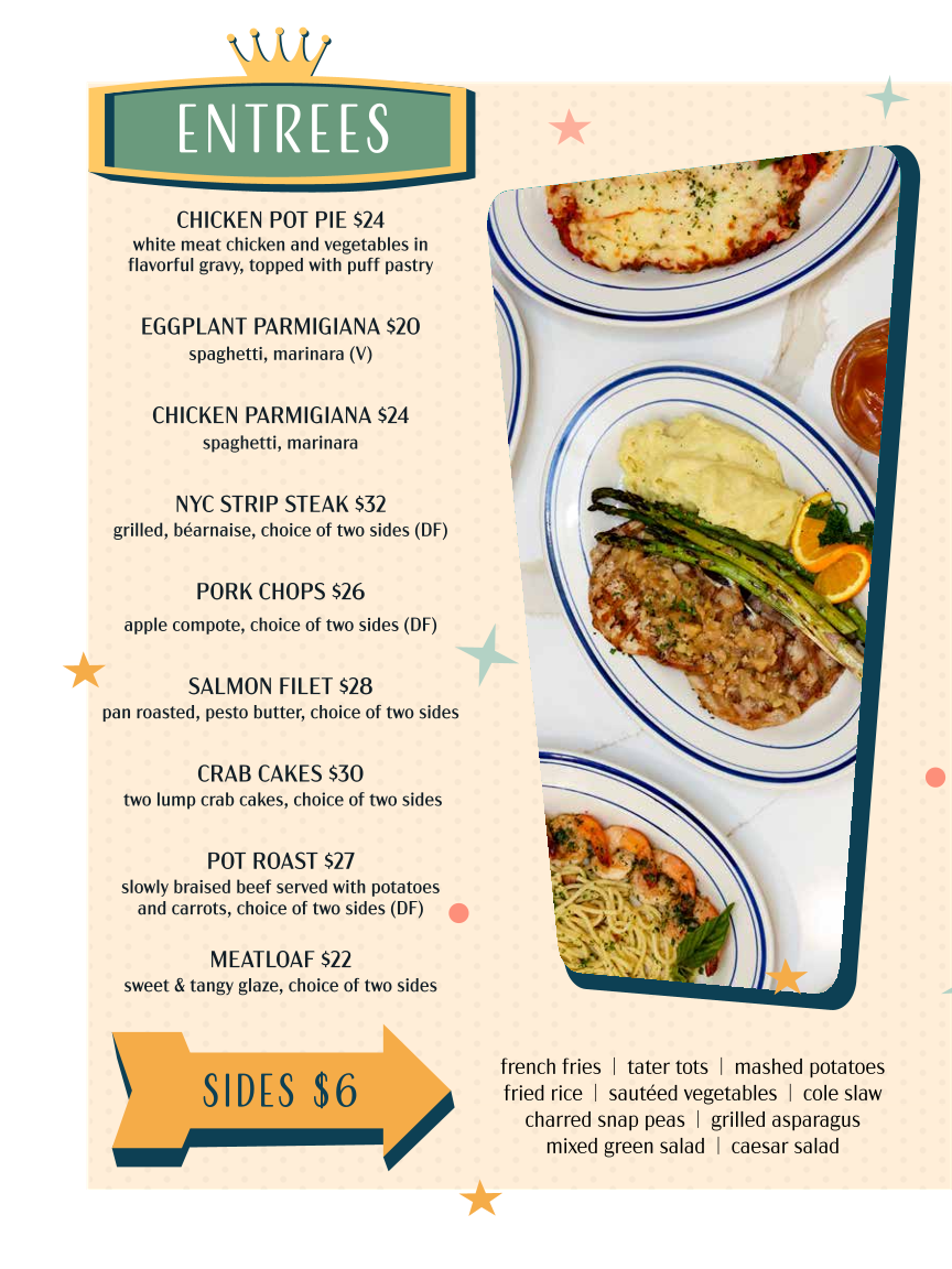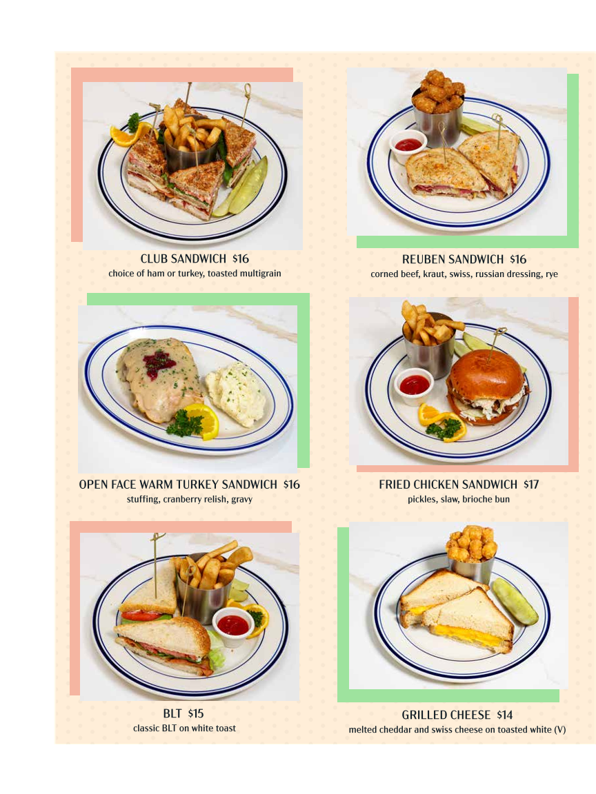 - Sandwiches: For a classic touch, try the BLT on white toast or the comforting Open Face Warm Turkey Sandwich.