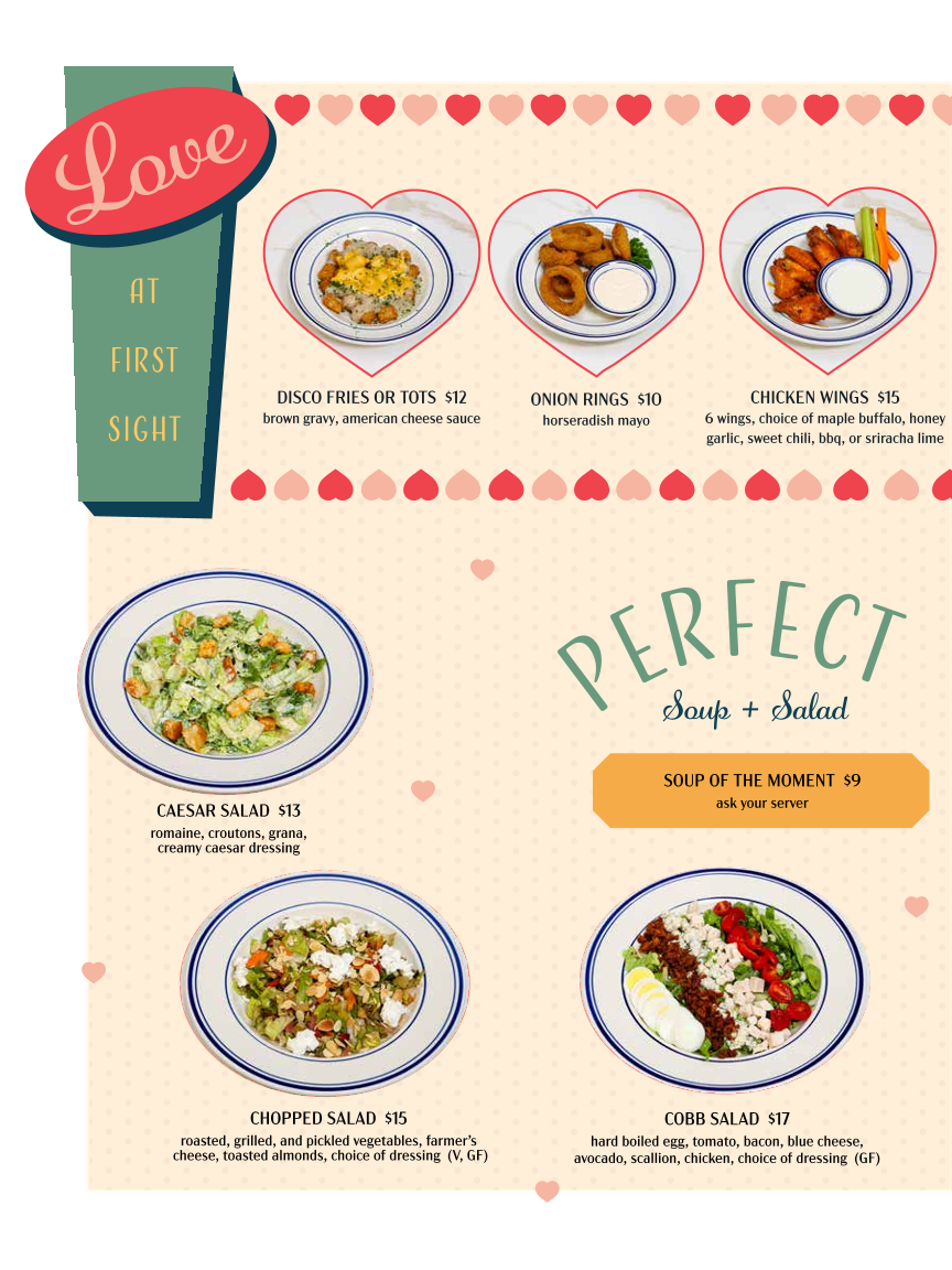 tomato, cucumber, pepper, olive, romaine, feta, red onion vinaigrette (V, GF)